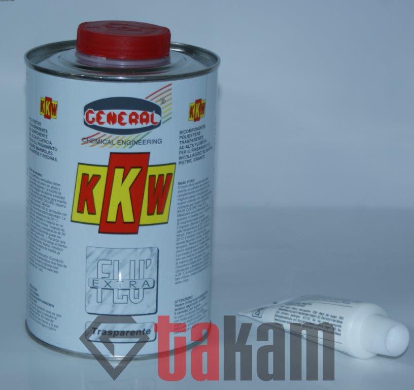 KKW to produkt najczęściej wybierany do wypełniania ubytków i klejenia granitów oraz gładkich powierzchni kamiennych o niskiej porowatości. Produkt sprawdza się również we wszystkich sytuacjach, w których użycie tradycyjnych klejów poliestrowych nie przynosi oczekiwanych rezultatów. Zawarte w produkcie żywice poliestrowe zapewniają niską kurczliwość, odpowiednie utwardzenie, doskonałą trwałość i siłę wiązania. Do kleju należy dodać utwardzacza w ilości 2-3%.